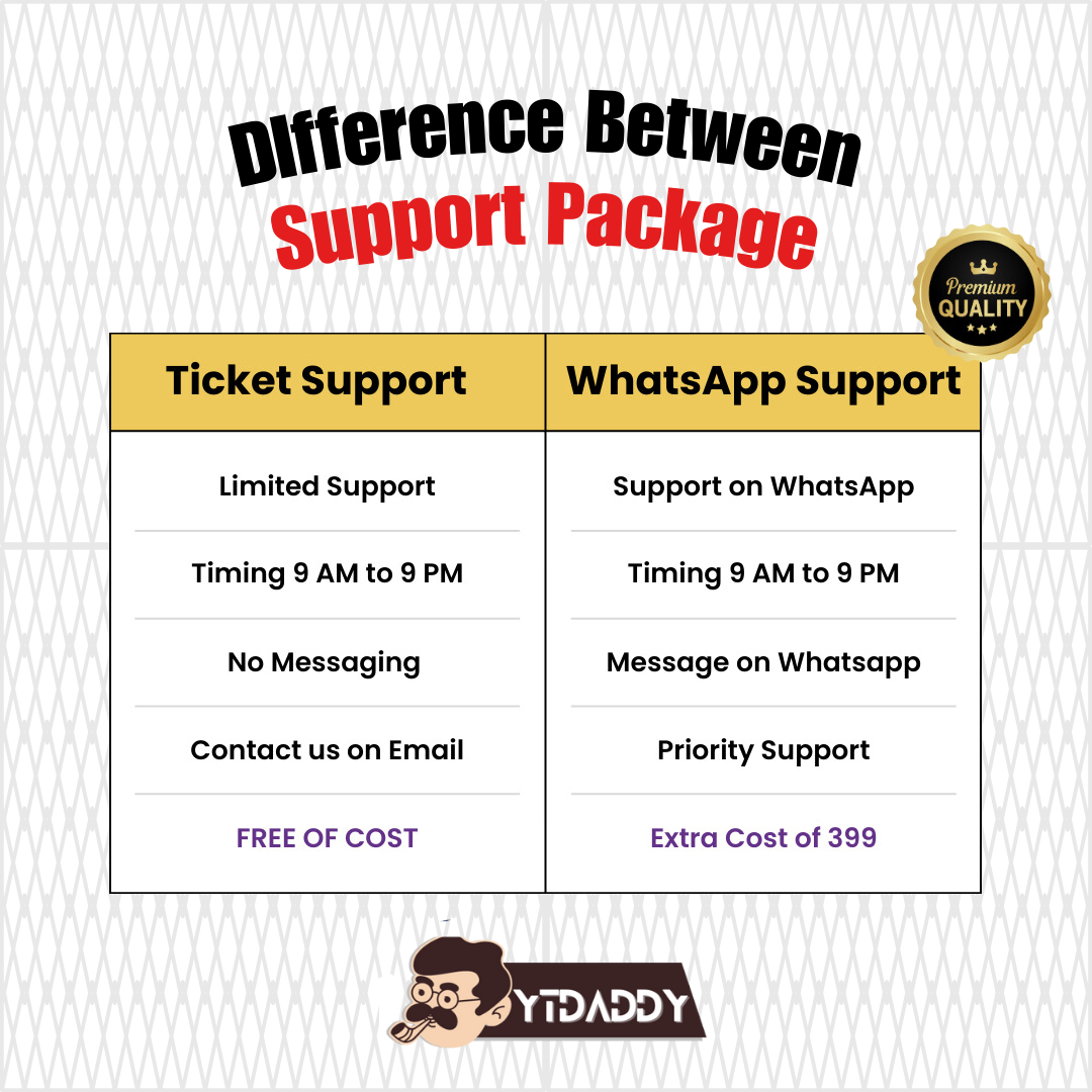 2. Ticket Support – Even without purchasing the WhatsApp support package, you’ll still have access to our comprehensive ticket-based support system, ensuring your queries are addressed efficiently.